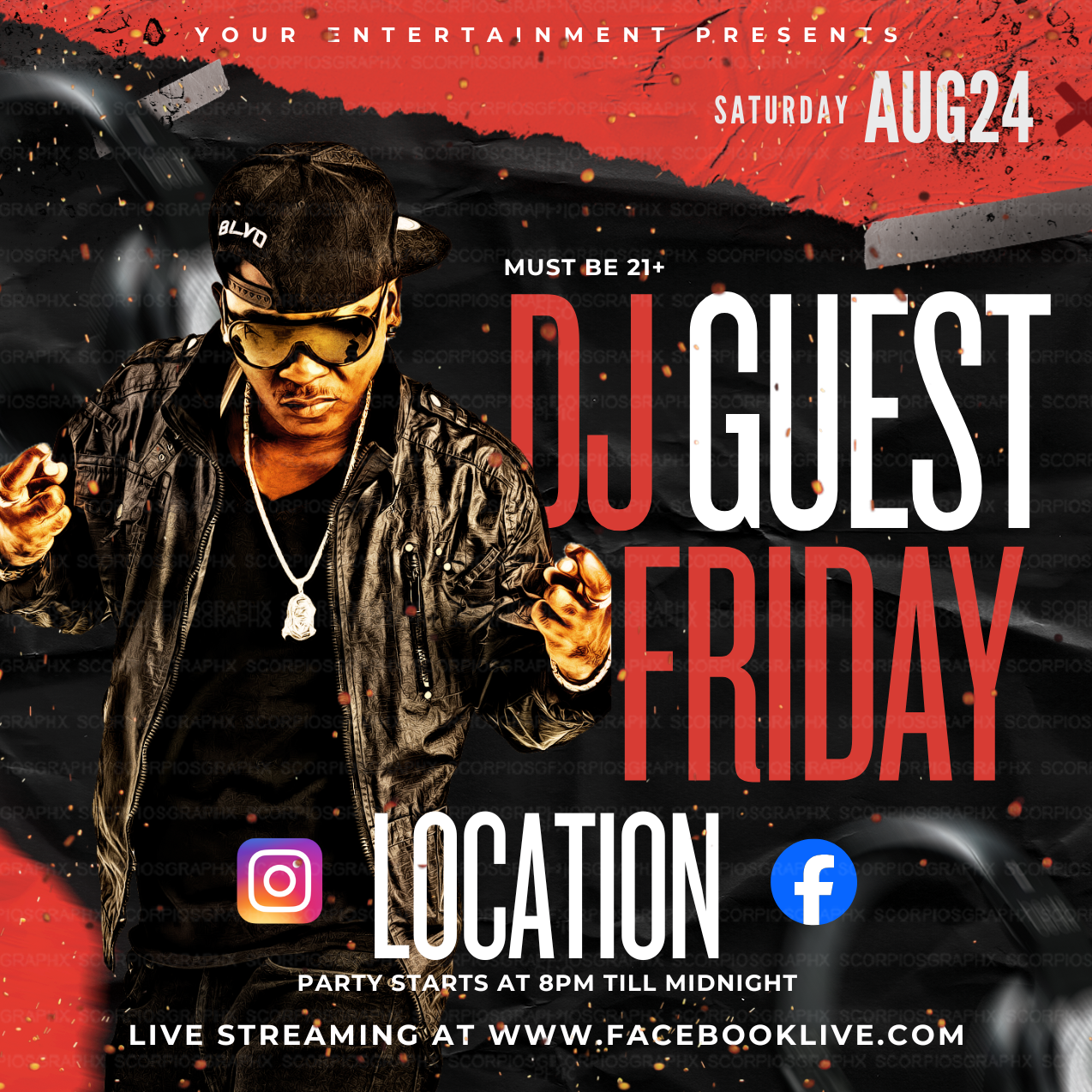 This is a Music/nightclub Themed digital flyer made for social media.